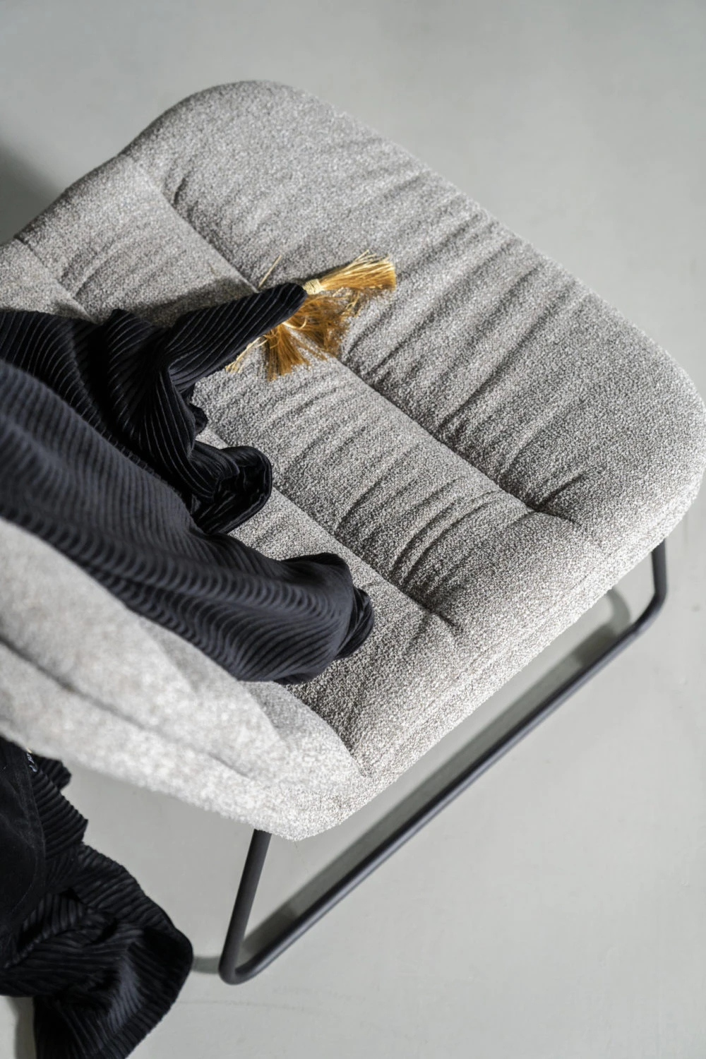 Pehmeä velour-pintainen Bermo vaalean harmaa nojatuoli on kaunis pieni loungetuoli. Ihana kermanvärinen kangaspinta on elävä ja miellyttän pehmeä. Nojatuolin runko on jämäkkää rautaa ja näin ollen tuoli kestää myös käytössä. Käsinojaton loungetuoli on helppo siirrellä ja ideaai myös pienen tilan nojatuolina. Myös muita maanläheisiä värejä.