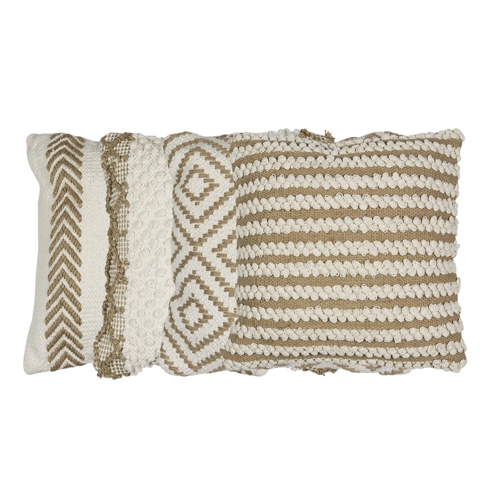 Raikas luonnonläheinen sisustustyyny kalanruotokuviolla. Kaunis bohotyylinen sohvatyyny 100% puuvillasta. Irrotettava sisätyyny sisältyy. Pesu 30 ‘C.