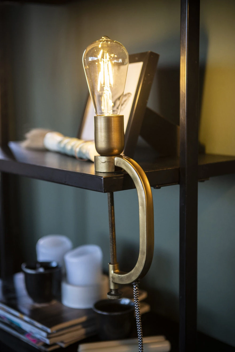 Kätevä Klamp musta hyllyvalaisin sopii tilaan silloin kun pöytätilaa on niukalti tai sitä halutaan käyttää muuhunkin kuin valaisimen tasoksi. Tämän kätevän valaisimen nipistätä kiinni hyllyyn tai pöytälevyyn juuri sille korkeudelle, mille toivot. Moderni linjakas muotoilu ja lamppua vaihtamalla voit muuttaa valaisimen ilmettä.