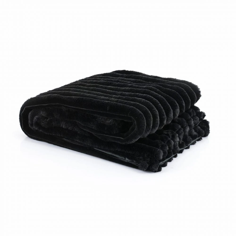 Ylellisen muhkea Wuzzy black torkkupeitto hukuttaa alleen maailman murheet ja käärii sinut ja vaikka kaverin suloiseen pehmeään syliin. Mustan sametin upottava pehmeys ja tikatut raidat ovat näyttävä yhdistelmä.