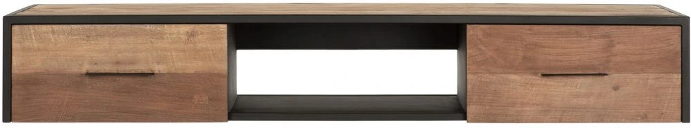 Tyylikäs matala puinen tv-taso, joka on valmistettu kierrätyspuusta. Tämä tv-taso on mahdollista nostaa seinälle. Ripustettava televisiotaso jättää lattian vapaaksi ja on siksi ilmava ja siisti ratkaisu moneen tilaan. Laadukas rouheasti viimeistelty tiikkipinta tuo kotoisuutta ja lämpöä sisustukseen.