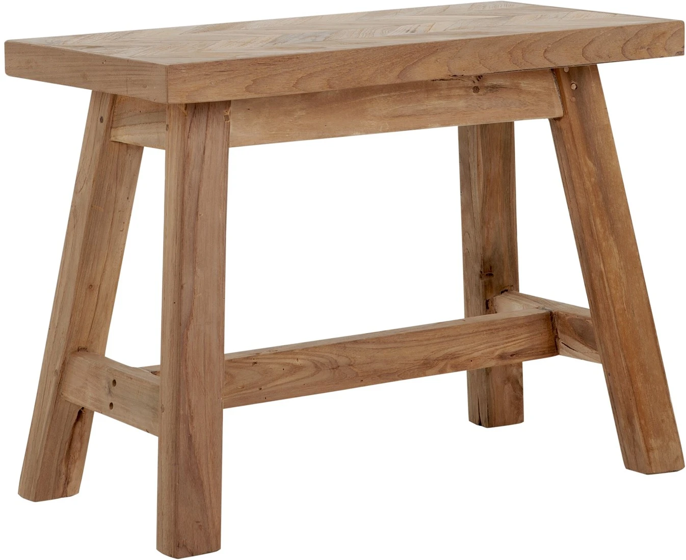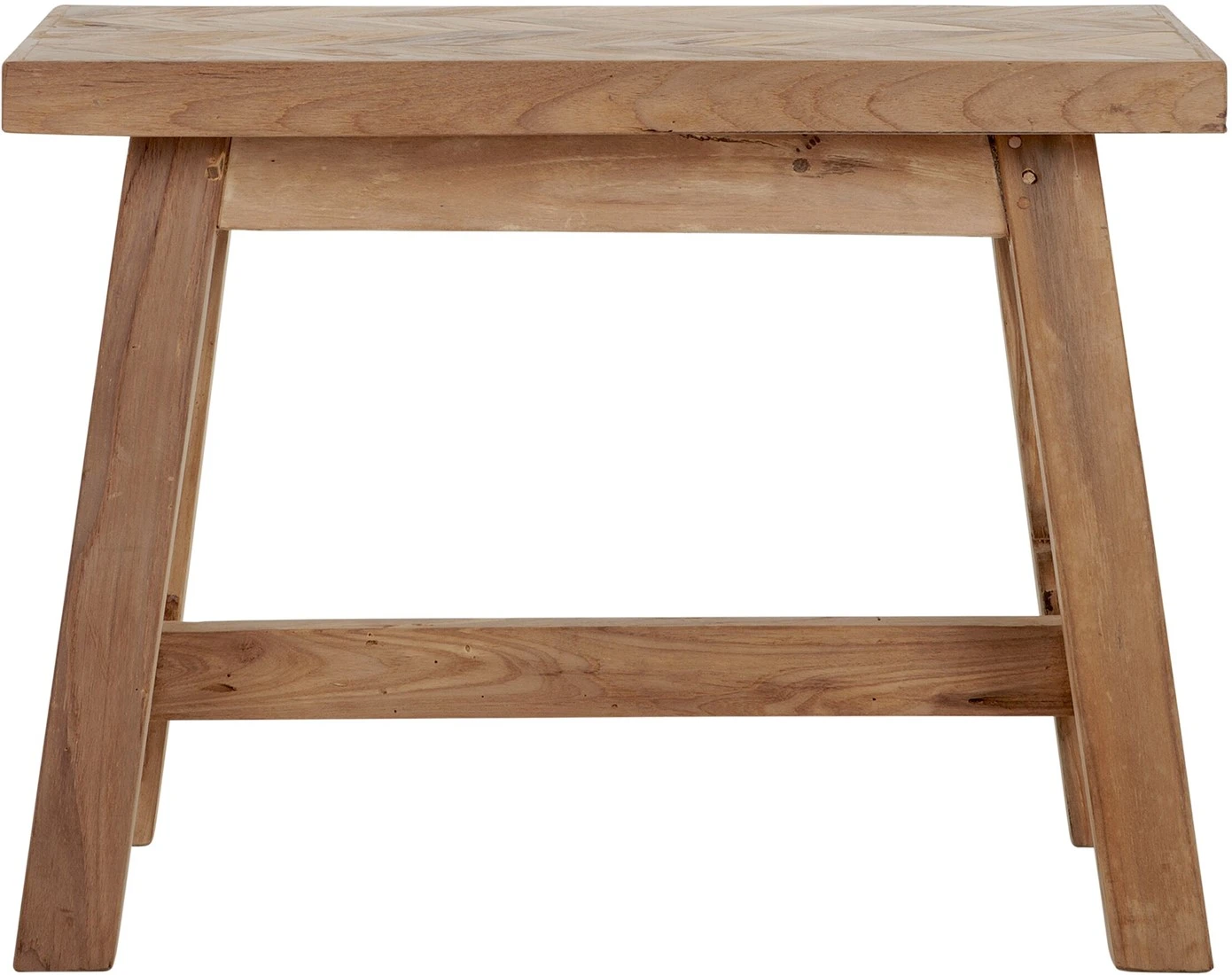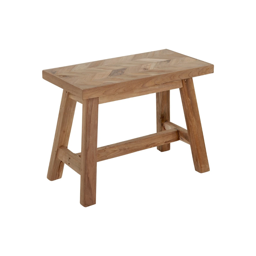Tämä upea Herringbone puupenkki kunnioittaa puusepäntaitoa. Kestävät tiikkipuun palat on ladottu kalanruotokuvioon, mikä tekee persoonallisen yksityiskohdan perinteiseen puupenkkiin. Jokainen tiikkipuinen puupenkki ja jakkara on uniikki ja käsin valmistettu. Puun luonteeseen kuuluu sen eläminen.
