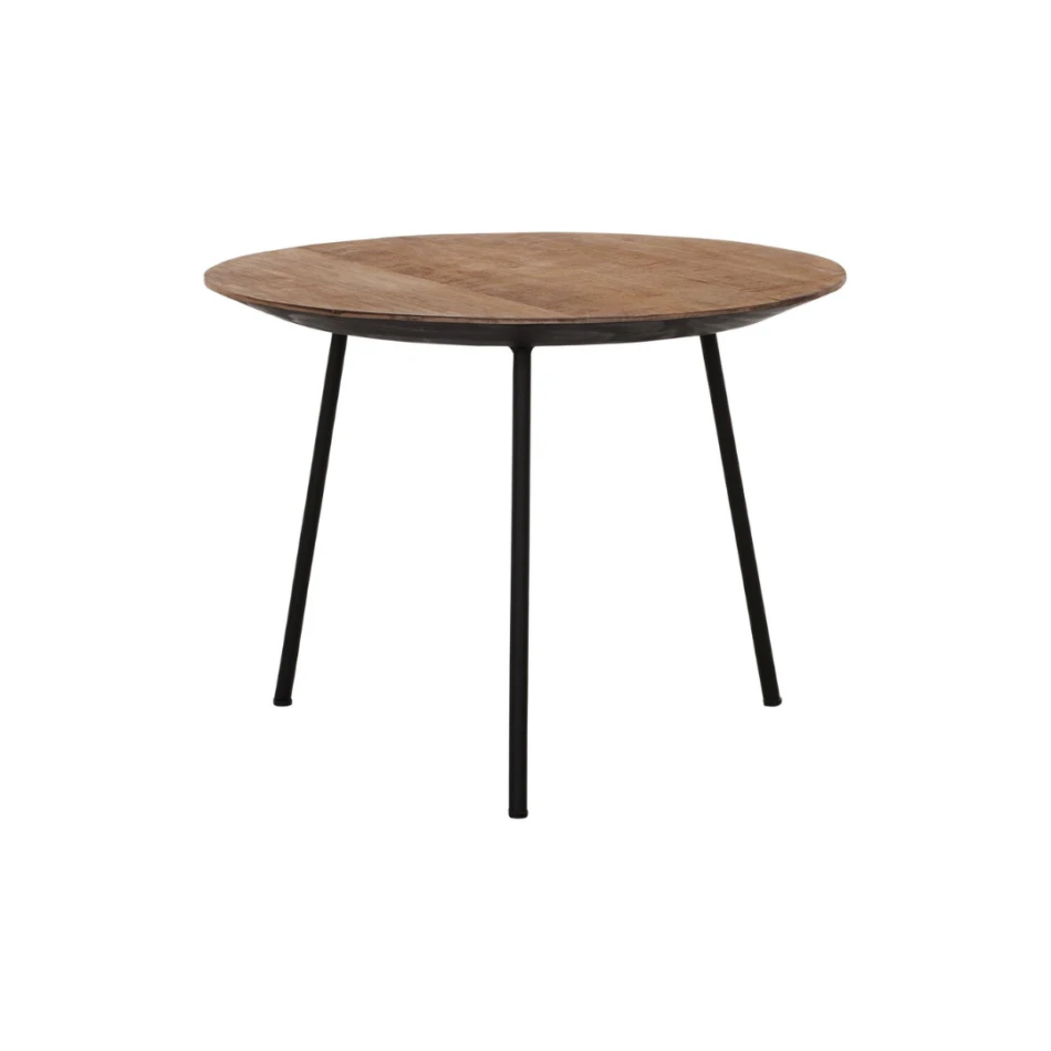 Tyylikäs pyöreä Jupiter on tiikkipuinen sohvapöytä pinnamaisilla mustilla metallijaloilla. Laadukas tiikkipöytä on jätetty pinnaltaan viimeistelemättömäksi, mikä tuo kotoisuutta ja lämpöä sisustukseen. Rautajalat nostavat kauniin pöydän elegantisti sopivalle korkeudelle. Vahvat kestävät materiaalit silmää ja elämää kestävään sisustamiseen. Tiikkipinta on helppo pitää puhtaana pyyhkimällä.