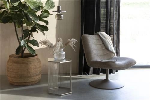 Upea Lounge Chair beige nojatuoli on matala nojatuolimalli, jossa on hyvä istua. Miellyttävä pyörivä nojatuoli on käytännöllinen valinta tilaan, jossa mielellään halutaan seurustella tai katsella vaihtuviin suuntiin. Vakosamettipinta on samalla sekä ministi retro että supertyylikäs. Matala selkänoja on ideaali silloin kun esimerkiksi tuolit halutaan asettaa ikkunan eteen eikä maisemaa ole syytä peittää. Saatavilla myös muita sävyjä.