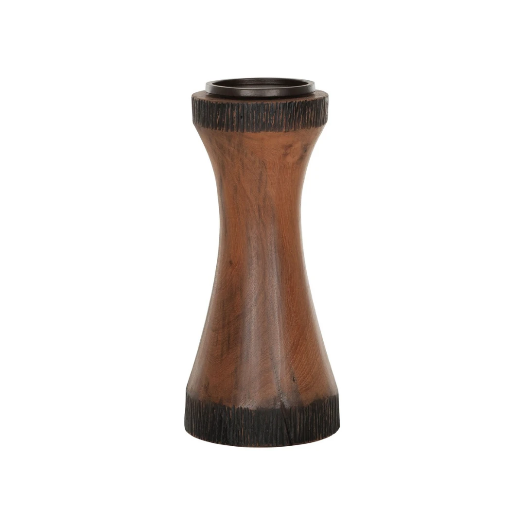Kun haluat sisustaa vähän rouheammin! Puinen kynttilänjalka large koossa ei fiinistele vaan tuo jykevyyttä kattaukseesi. Valitse tähän joko reilu rustiikki pöytäkynttilä tai pehmennä fiilistä hempeämmillä väreillä sisustukseesi sopivasti. Kauniilla puulla tuot kotoisaa tunnelmaa tilaan kuin tilaan. Näyttävä koko illallispöytään tai oleskelutiloihin.