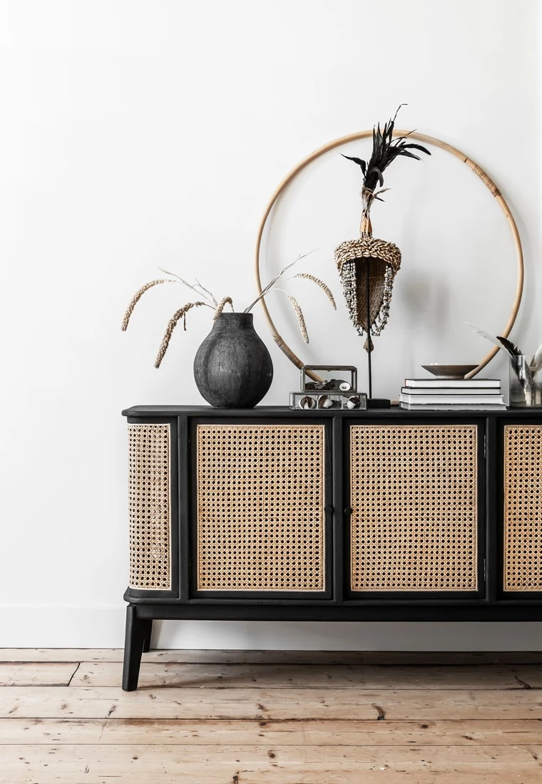 Jotain erilaista tyylillä! Rottinkinen iso senkki, joka pysyy jämäkästi paikoillaan, ja jota kestää katsella pidempäänkin. Täydellinen säilytyskaluste, jos boho sisustus on lähellä sydäntä, mutta et halua tinkiä tyylistä! Siis laatua taloon.