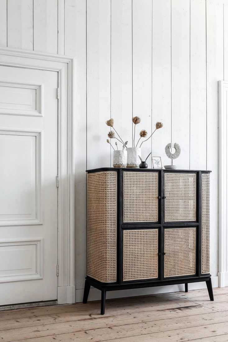 Jotain erilaista tyylillä! Rottinkinen kaappi, joka pysyy paikoillaan, ja jota kestää katsella pidempäänkin. Täydellinen säilytyskaluste, jos boho sisustus on lähellä sydäntä, mutta et halua tinkiä tyylistä! Siis laatua taloon.