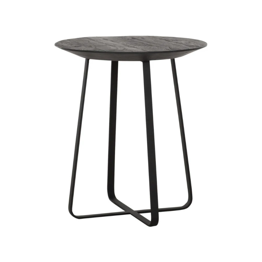 Neptunes on kokomusta pyöreä sohvapöytä vahvalla mustalla metallirungolla. Laadukas tiikkipöytä on viimeistelty taidolla mahdollisimman sileäksi, siten että lankkujen elävyys ja puun aaltoilu on saatu kuitenkin