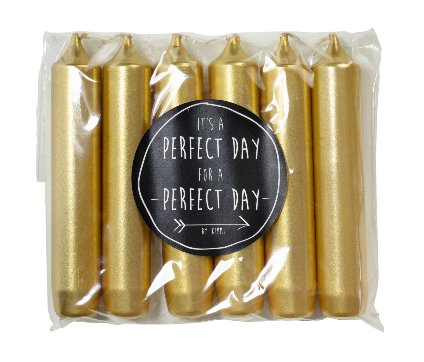 Ylelliset kullanväriset pienet kruunukynttilät kivassa paketissa on täydellinen pikkulahja tai omaa kattausta piristämään! It’s a Perfect Day for a Perfect Day-minikynttilät on käsinvalmistettu korkealaatuisesta parafiinista. Lyhyet kruunukynttilät sopivat kynttiläkruunuun myös kun isommat eivät käy. 6 kynttilää paketissa. Paloaika 5h. Paljon ihania värejä.
