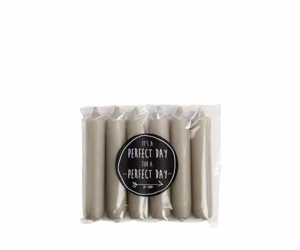 Söpöt pellavan harmaat pienet kruunukynttilät paketissa on täydellinen pikkulahja tai omaa kattausta piristämään! “It’s a Perfect Day for a Perfect Day” minikruunukynttilät on käsinvalmistettu korkealaatuisesta parafiinista. 6 kynttilää paketissa. Lyhyet kruunukynttilät käyvät myös silloin kun isommat eivät sovi. Paloaika 5h. Paljon ihania värejä.