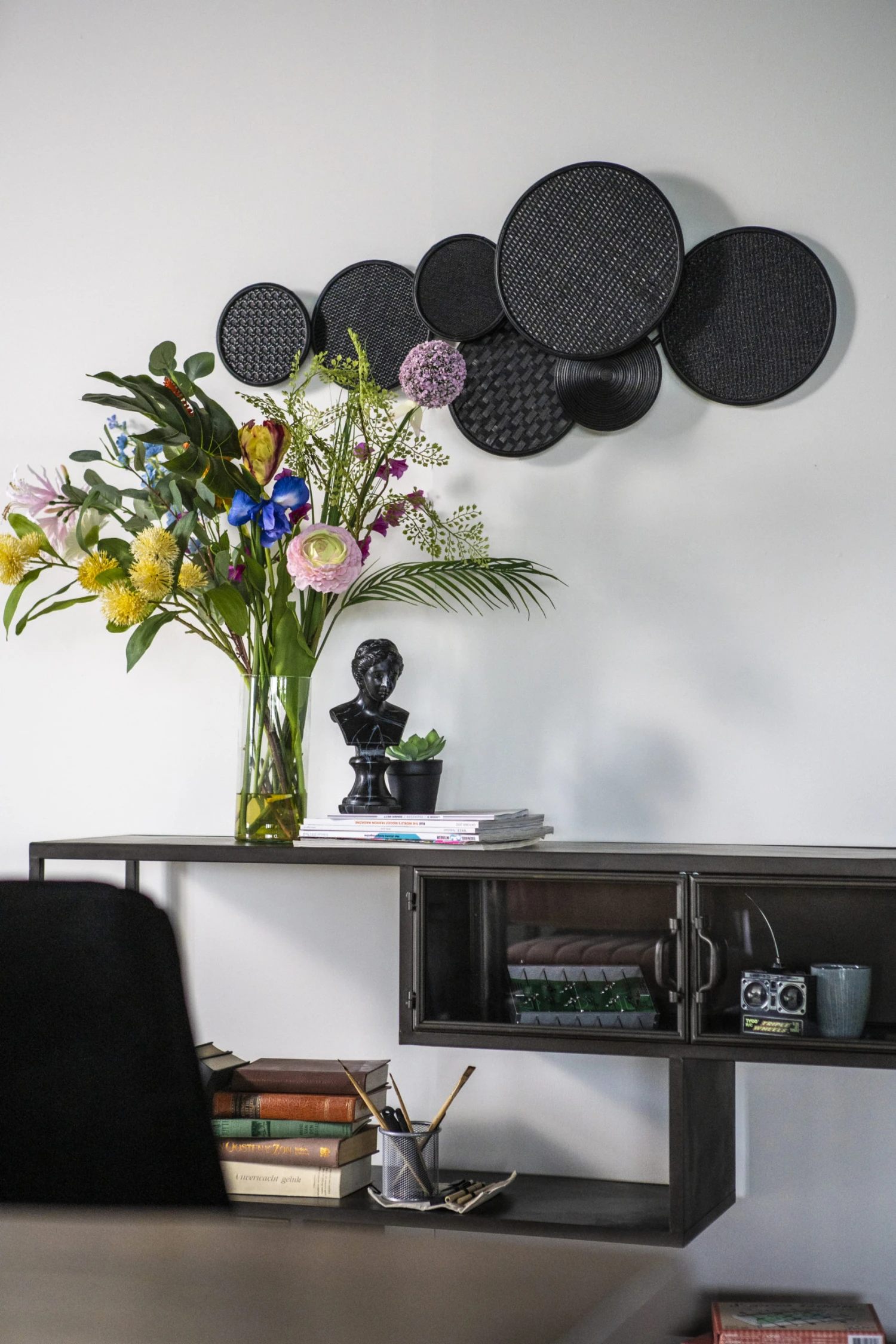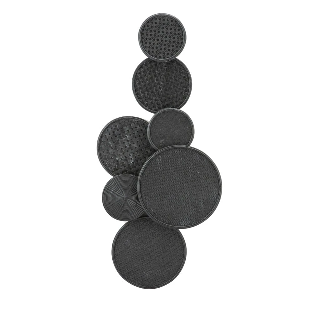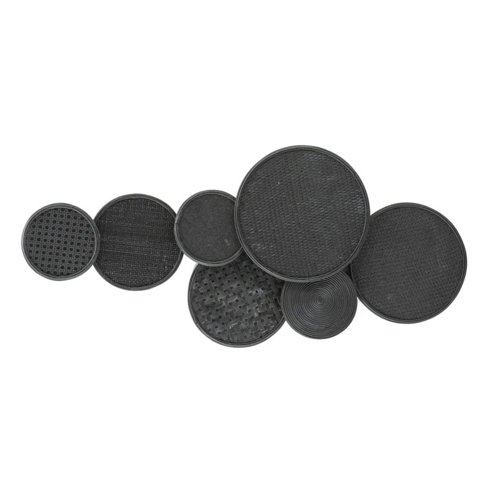 Boho sisustus kohilleen! Rottingista ja bambusta punottu musta boho seinäkoriste tuo rennon boheemin tunnelman kotiisi. Seinäkoristeet ovat nyt niin pop ja hop, ettei ilman meinaa lähteä tunnelma ollenkaan nousuun! Musta väri tuo samalla mukavasti säpinää sisustukseen. Upeaa luonnonläheistä fiilistä. Seinäkoristeen erikokoiset pyörylät ovat kiinni toisissaan, joten seinää ei tarvitse tikata täyteen nauloja. Toimii oivallisesti myös merellisiin sisustuksiin, vaikka mökille.