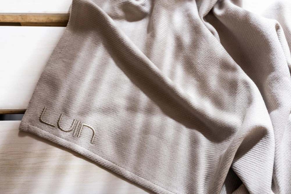 LUIN laudeliina 150×60 Sand. Monikäyttöinen laudeliina sopii ulos yhtä hyvin kuin sisällekin. Käytä hemmottelevana saunan laudeliinana tai tyylikkäänä istuinsuojana terassituoleilla.