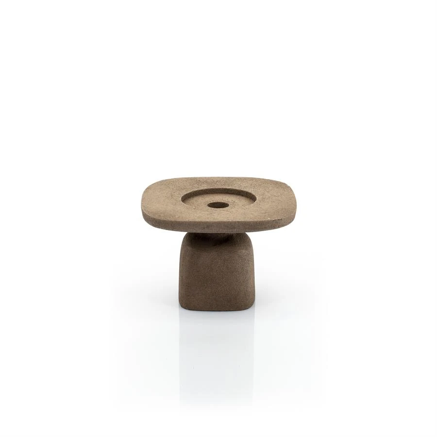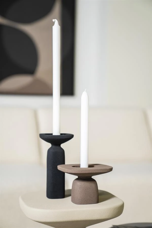 Pehmeitä linjoja yllätyksellisillä materiaaliyhdistelmillä. Tämä kaunis pyöreälinjainen ruskea kynttilänjalka vaikuttaa kiveltä, mutta on tehty metallista ja hiekkakäsitelty päältä. Käsittelyllä on saatu aikaan upea mielenkiintoinen ruskea mattapinta tähän pöytäkynttilälle tai isolle tuikulle sopivaan kynttilänjalkaan. Yhdistä saman sarjan muihin kokoihin.