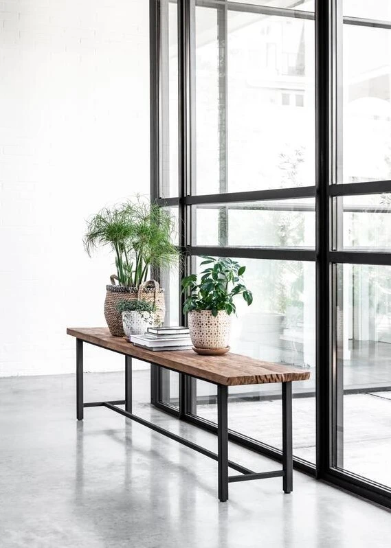 Jykevä Timeless Black musta puupenkki ei hetkahda reilummankaan istujan alla. Tiikkipuu on erittäin vahva materiaali ja rautarunko on tehty ikuiseksi. Beam sarjan pöydissä ja penkeissä päät on viimeistelty säilyttäen sahajälki, mikä tekee upeaan huonekaluun tyylikkään rouhean loppusilauksen. Yhdistä tiikkipuiseen RUOKAPÖYTÄÄN ja ruokailutilasi rento tunnelma on täydellinen. Toimii hyvin myös elämää kestävänä tyylikkäänä eteisen penkkinä.