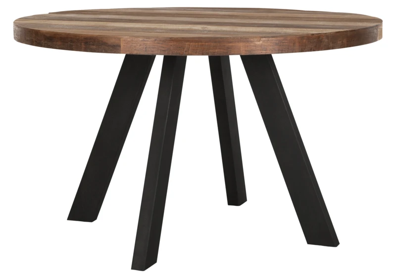 Katsetta ja elämää kestävään sisustustyyliin jykevä puinen pyöreä ruokapöytä, jonka halkaisija on 130cm. Upea yli 5cm paksu taso kierrätystiikistä ja rautarunko kestää arjen ja varsinkin juhlat! Pyöreä pöytä on kätevä useimpiin tiloihin. Sen ääreen istuu hyvin 6 ruokailijaa. Sama malli saatavana myös mustalla tiikkitasolla.