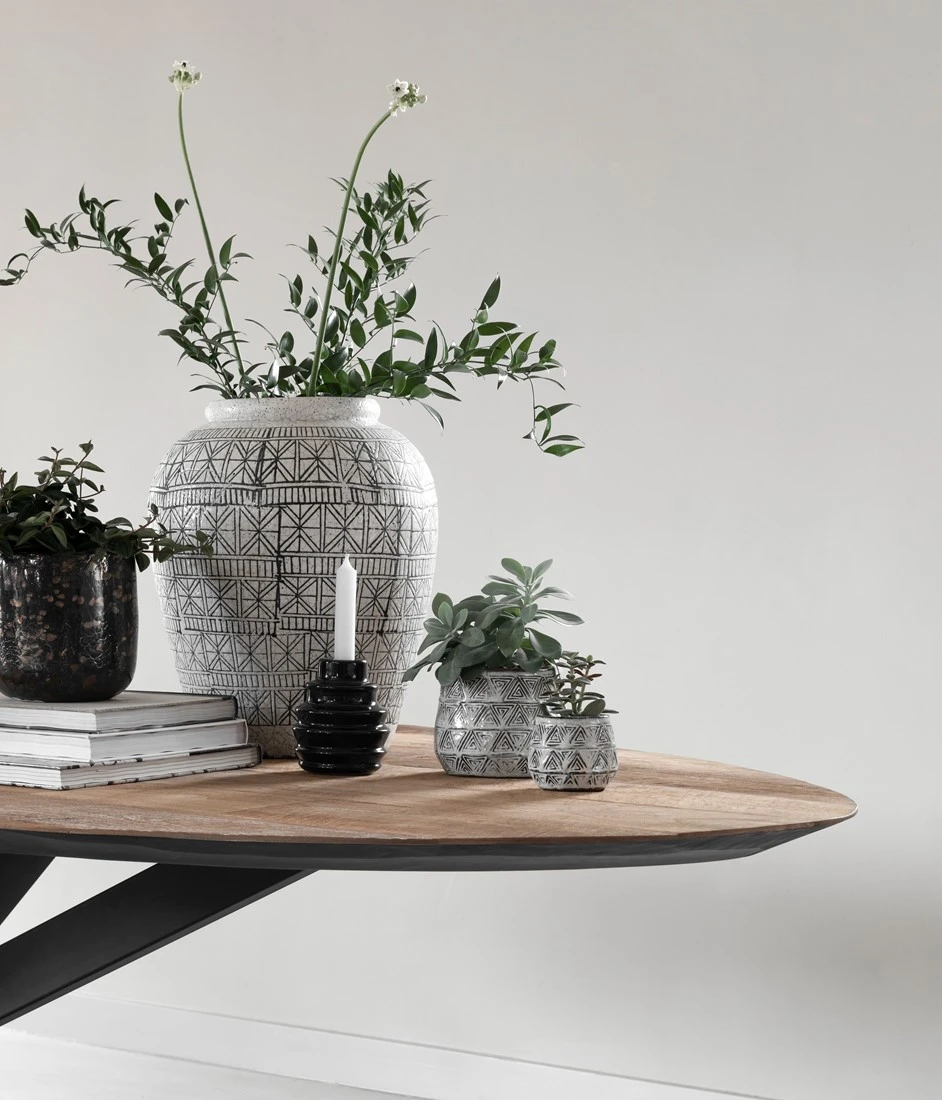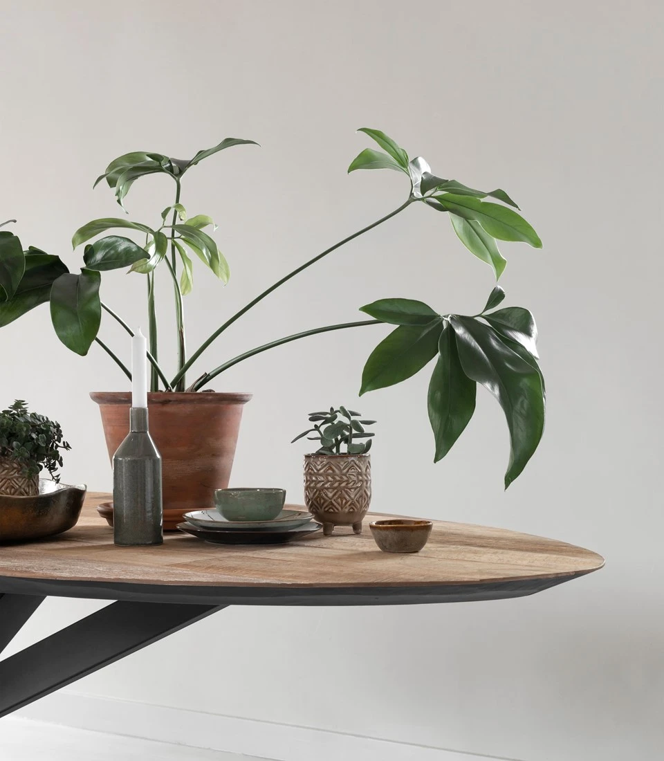 Katsetta ja elämää kestävään sisustustyyliin jykevä puinen ruokapöytä. Uusi ovaali ruokapöytä on mitä mainioin malli, jossa yhdistyy sekä pyöreän että suorakaiteen parhaat puolet! Upea viistoon leikattu pöytätaso on kierrätystiikistä ja rautarunko kestää arjen – ja varsinkin juhlat! Sama malli saatavana myös hiiltyneen mustalla tiikkitasolla. Hämähäkkijalkainen tiikkipöytä on rohkean sisustajan vaihtoehto.
