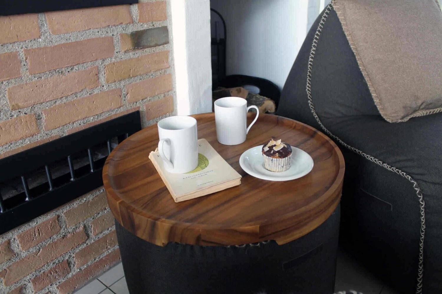 TRAYit tarjotin toimii hyvin sellaisenaan, mutta lisää näyttävyyttä saat yhdistämällä sen SERVEit tarjoiluvaunuun tai Drum rahiin. Ne loksahtavat saumattomasti yhteen. Tarjottimissa kolme värivaihtoehtoa: tammi, akaasia ja musta puu.