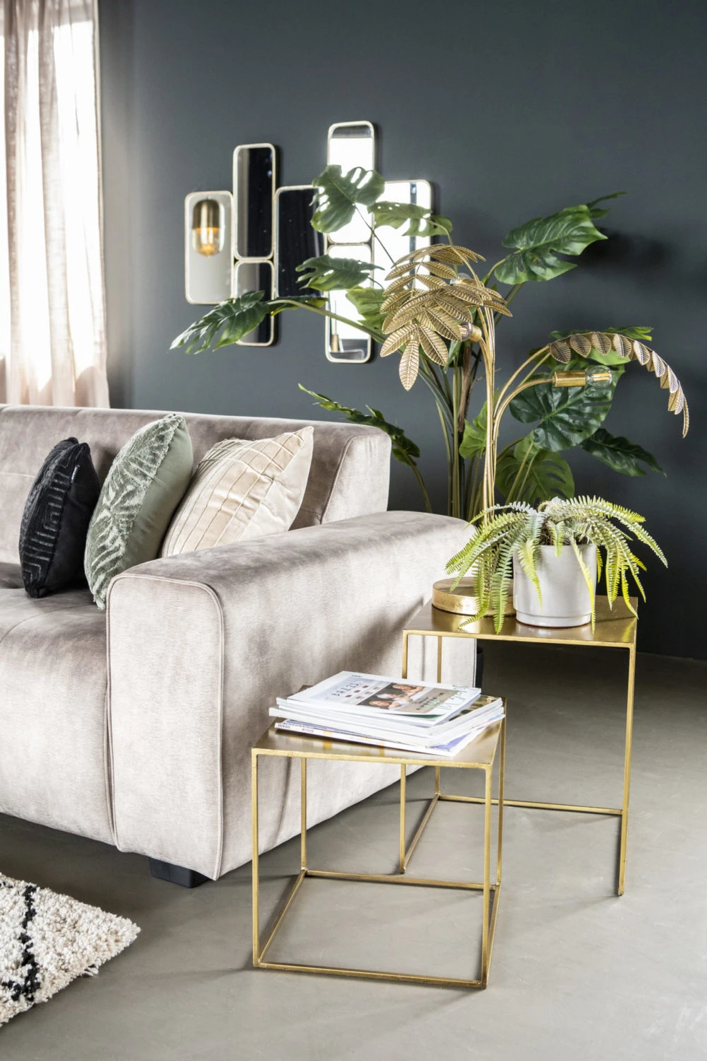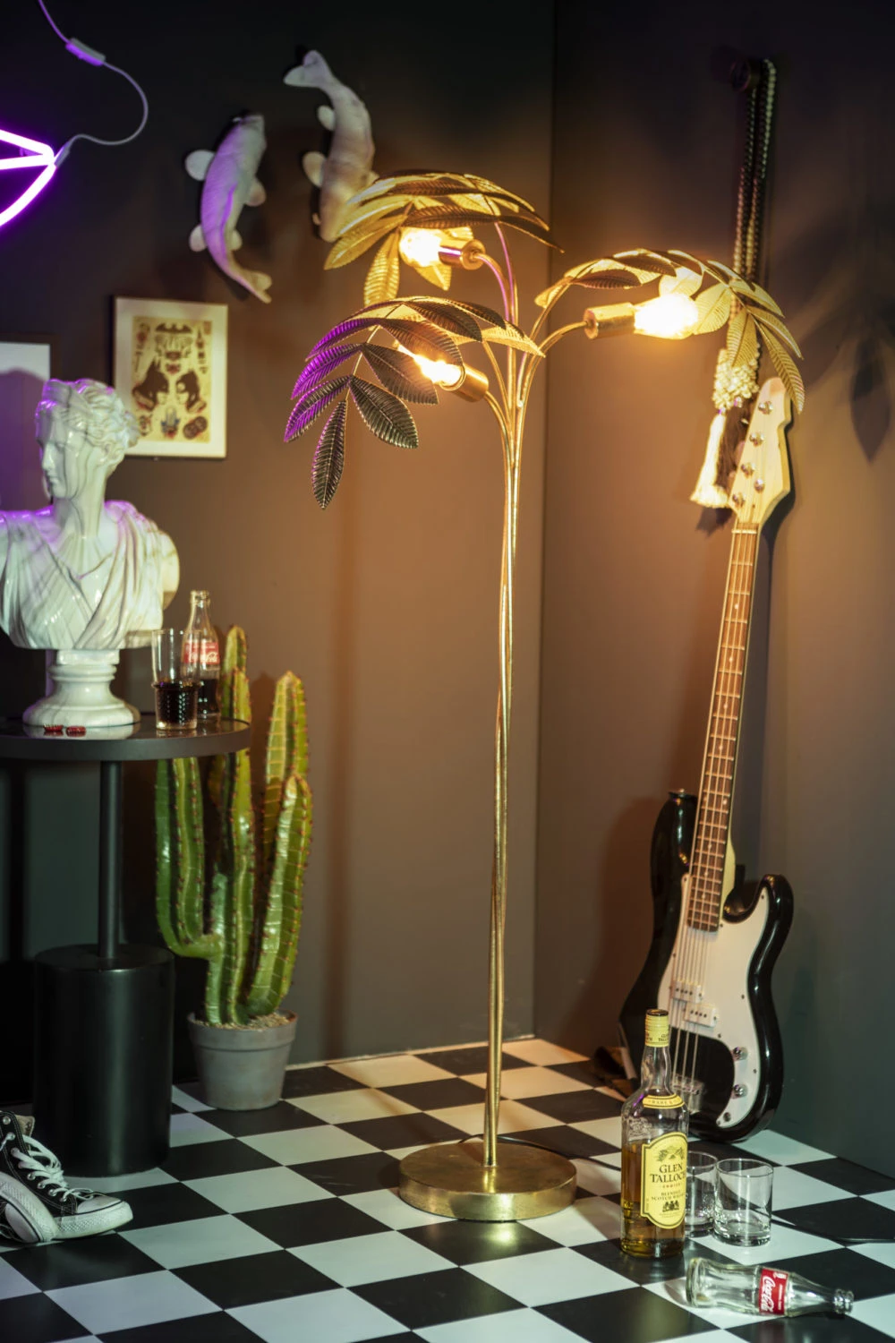 Unbeleafable indeed! Tämä kuparinvärinen lattiavalaisin on nimensä mukaisesti kerrassaan uskomaton jalkavalaisin. Kultaisen kuparin väriset metallilehdet taipuvat kauniiksi varjostimeksi kolmen lampun päälle ja hajottavat valon kauniisti lävitseen, kuin aidot lehden ikään. Valo sirottuu kauniisti lehtien läpi ja alaspäin hyvin toimien mainiosti myös lukuvalona. Tässä valaisimessa on jotakin rehevää, mielenkiintoisen eleganttia, 20-luvun tunnelmaa.