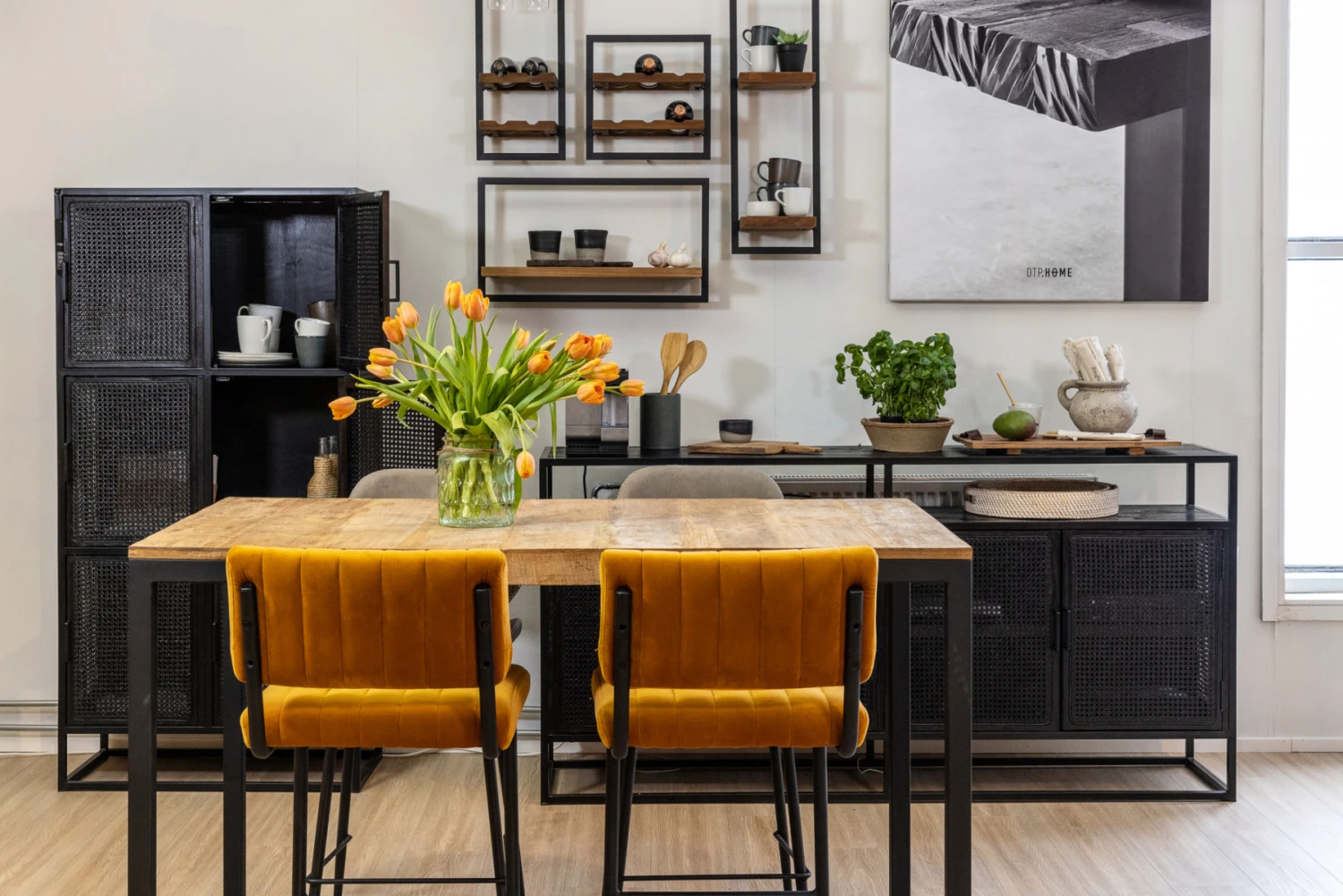 Puun ja tumman metallin rouhea yhdistelmä tuo moderniin kotiin vähän rosoa ja kodikasta tyyliä. Voit yhdistellä sarjan hyllyjä omaksi kokonaisuudekseen tai käyttää niitä erikseen.